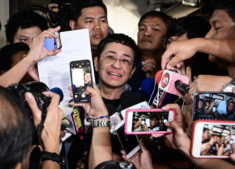 MANILA (AFP, REUTERS) - Philippine journalist Maria Ressa was freed on bail on Thursday (Feb 14) following an arrest that sparked international censure and allegations she is being targeted over her news site's criticism of President Rodrigo Duterte.