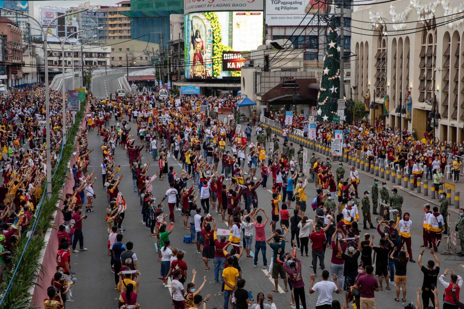 MANILA (AFP) - Thousands of devotees thronged a church in the Philippine capital Saturday (Jan 9) for a glimpse of a centuries-old statue of Jesus Christ believed to have miraculous healing powers, after an annual parade was cancelled due to Covid-19.