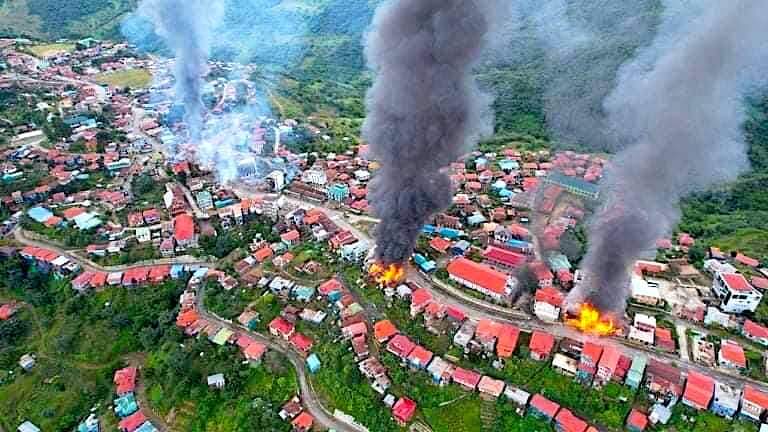 The junta's information team confirmed on Saturday that two churches and 70 homes were burnt down in Thantlang, accusing the PDF of the blaze after security forces had clashed with their fighters.