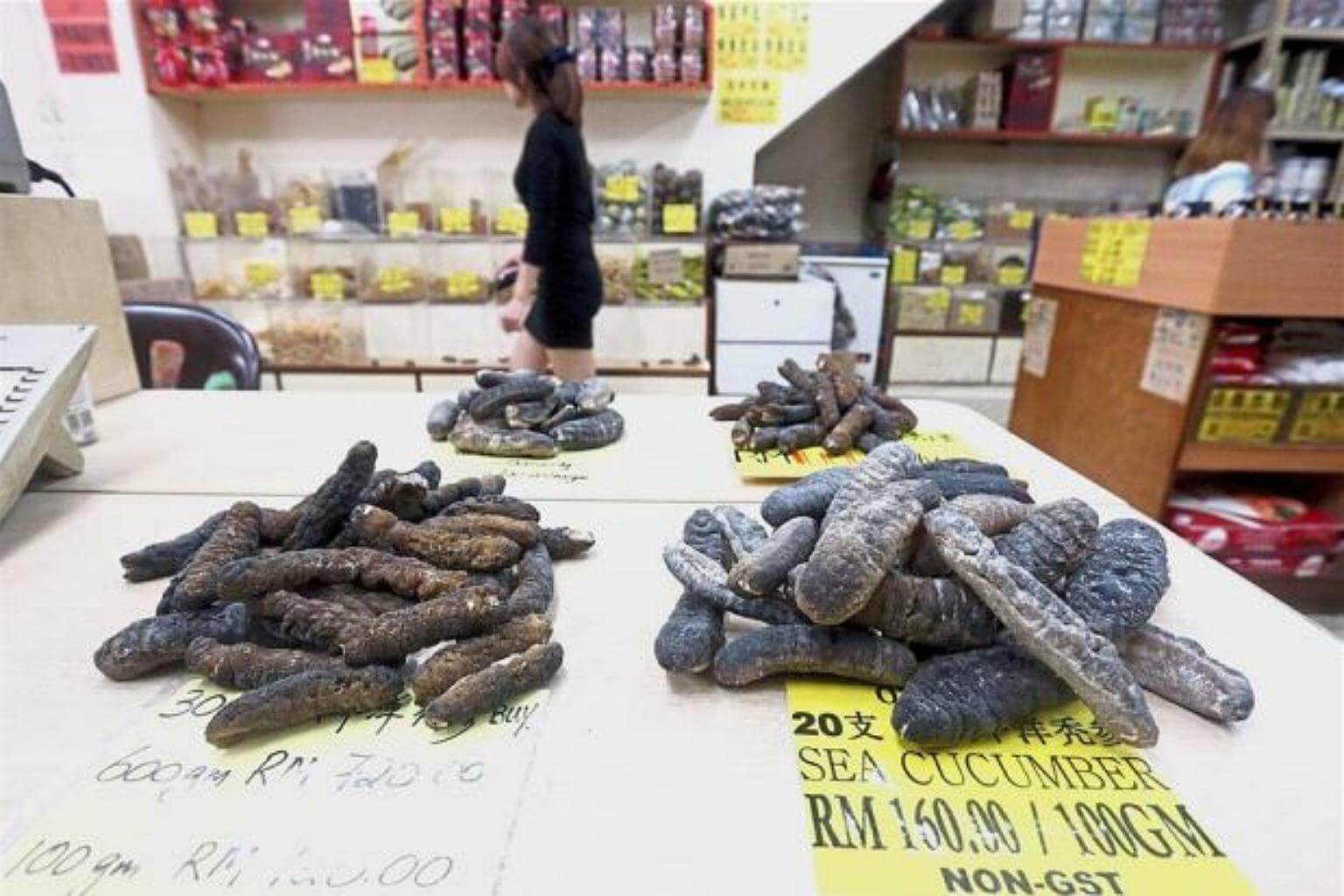 Depending on their size and origin, the dried sea cucumbers, or hai shen in Mandarin, cost between RM760 and RM3,200 per kg at stores in Petaling Jaya.