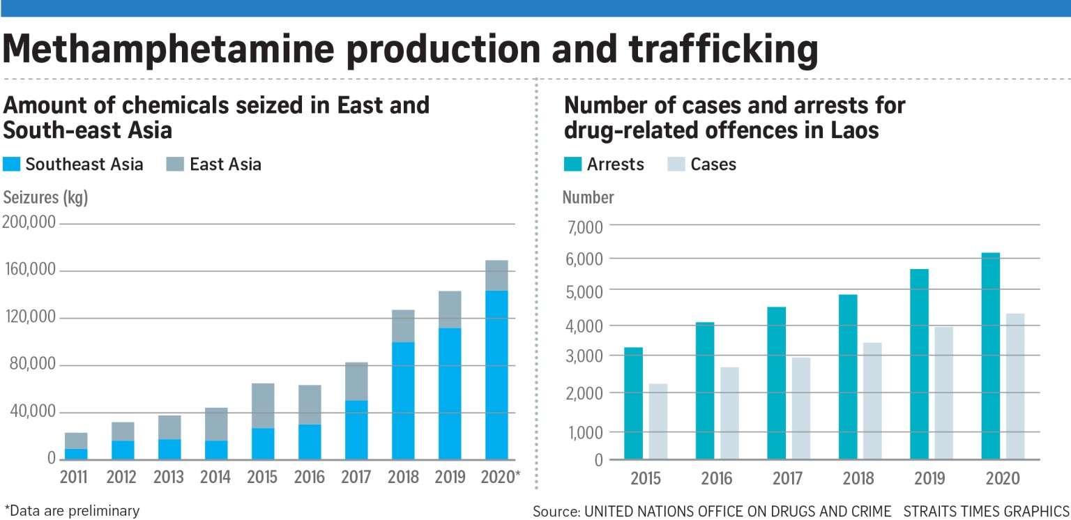 A report from the United Nations Office on Drugs and Crime (UNODC) that was released on June 10 confirms that roughly 170 tonnes of methamphetamine were seized in the region last year - a 19 per cent increase over the 142 tonnes seized in 2019.