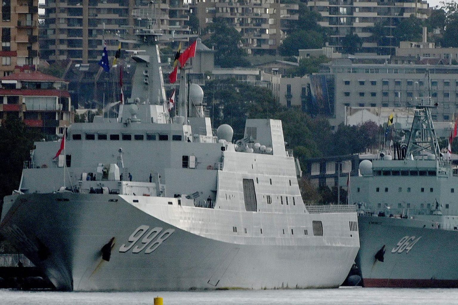 A photo taken on June 3 shows Chinese warships docked at the Garden Island naval base in Sydney.