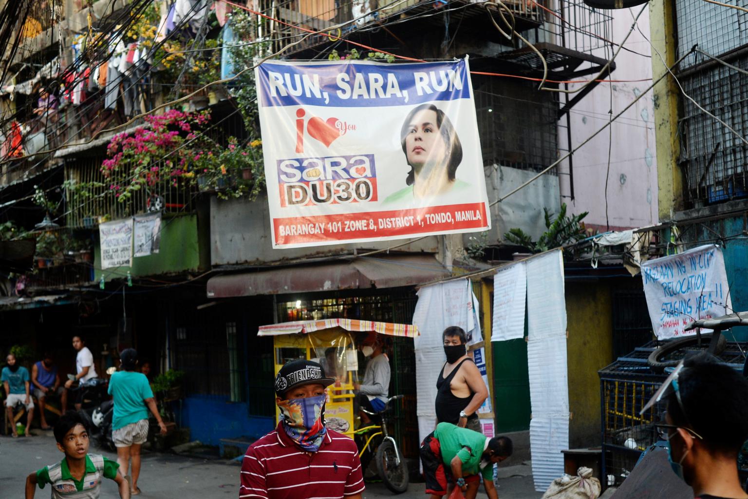 A banner showing support for Davao City Mayor Sara Duterte-Carpio in Manila on April 9.