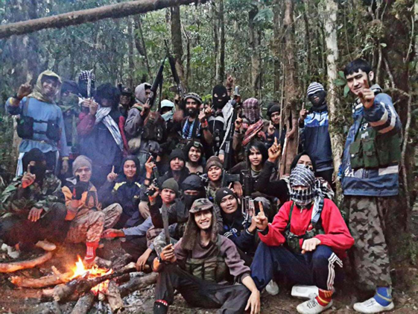 Members of the East Indonesia Mujahideen (MIT) terrorist group at their hiding place in the forests of Poso in Central Sulawesi.