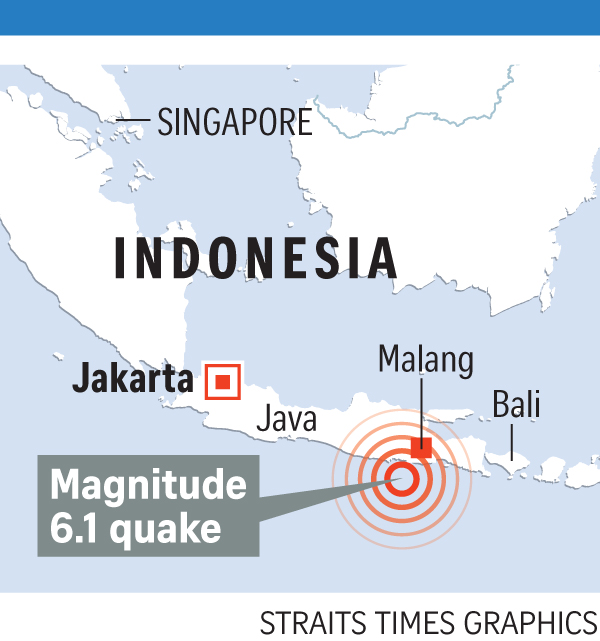 At least eight people were killed and 39 others injured after a magnitude 6.1 earthquake hit at 2pm local time (3pm Singapore time), the National Disaster Management Agency (BNPB) said yesterday.