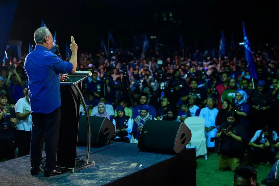PN chairman Muhyiddin Yassin addresses the crowd in Selangor, in a final rally ahead of the state polls.