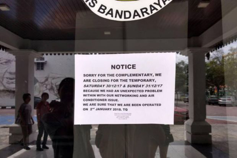 The notice in Ipoh, capital city of Perak state, said: "Sorry for the complementary, we are closing for the temporary, Saturday 30/12/2017 and Sunday, 31/12/2017 because we had an unexpected problem within with our networking and air conditioner issue.