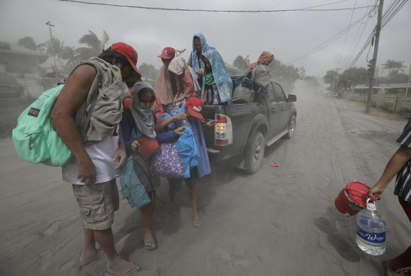 Most came from Batangas province, which on Monday declared a "state of emergency". Many have had to walk through ankle-deep mud for several kilometres. Some could not yet flee.