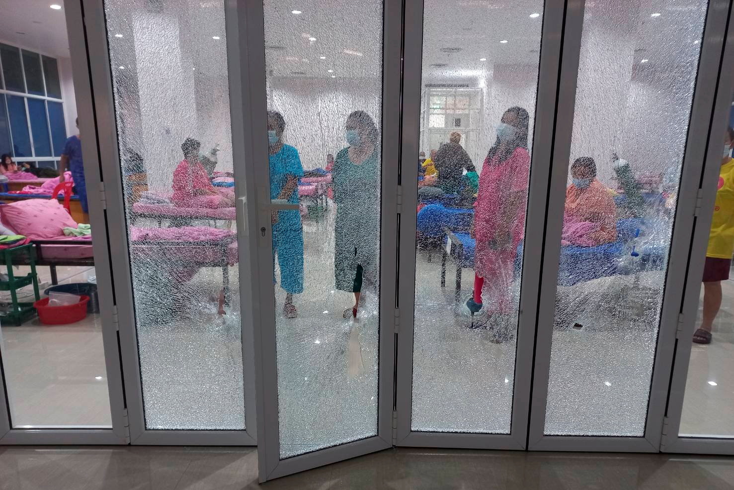 Pictures of the scene at the field hospital showed broken glass in front of an area where patients were sat in their beds.