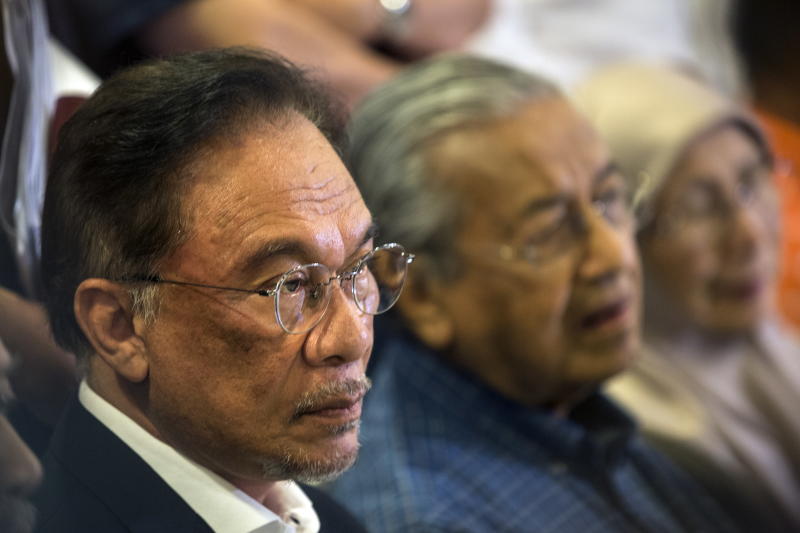 In a photo taken on Nov 23, 2019, (from left) Parti Keadilan Rakyat president Anwar Ibrahim, Malaysian Prime Minister Mahathir Mohamad and Deputy Prime Minister Wan Azizah at a press conference held at the conclusion of a presidential council meeting in Putrajaya, Malaysia.