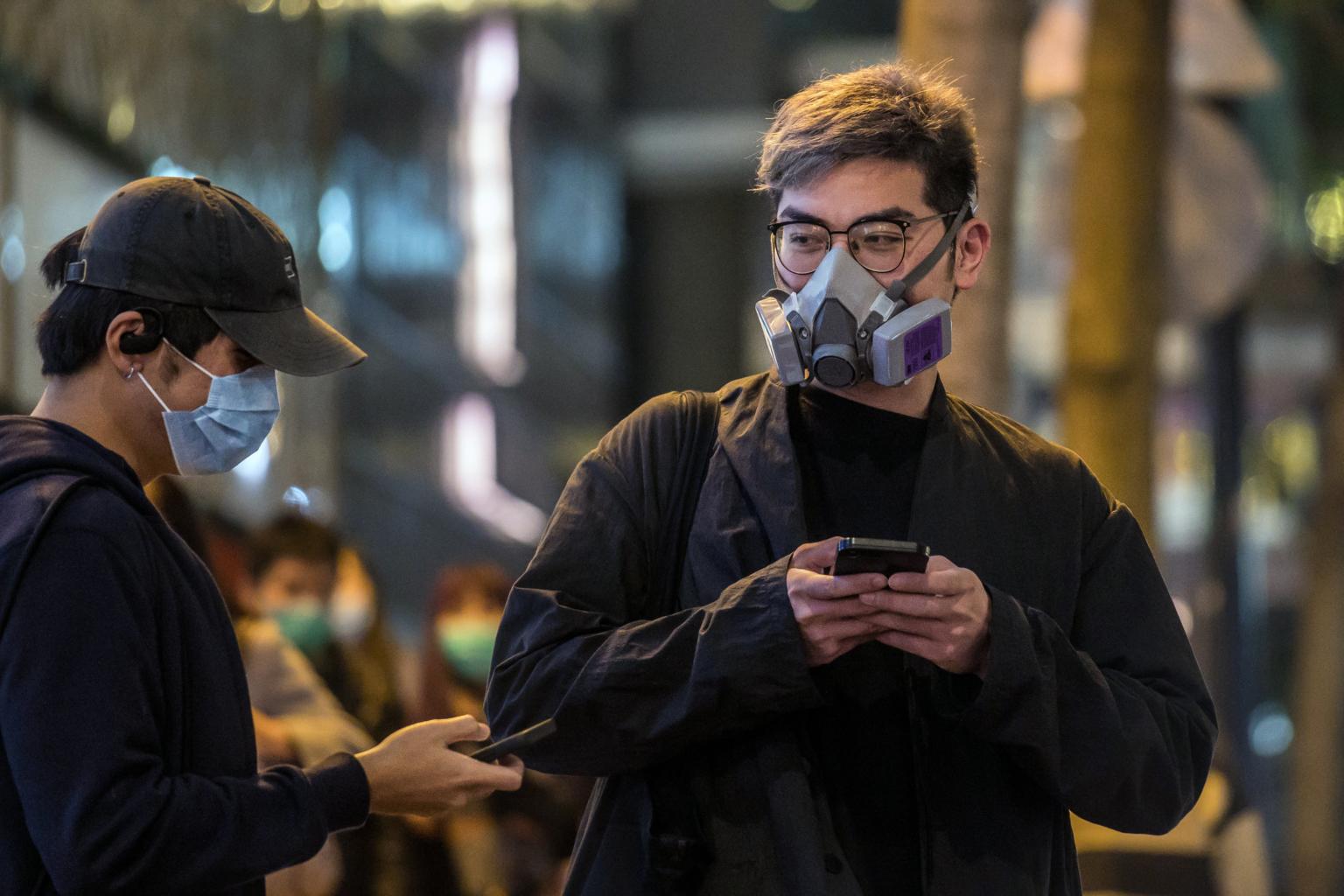Pedestrians wear protective face masks in Hong Kong on Feb 6, 2020.