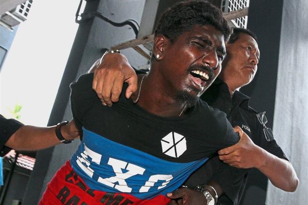 Herry Dass crying and begging for his father’s mercy as he is being led out of the court.