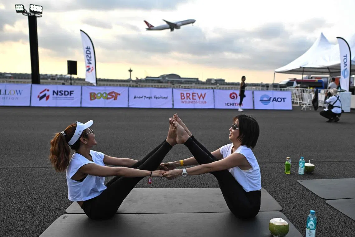 ‘Feel like a beautiful bird’: Hundreds do yoga on Thai airport runway