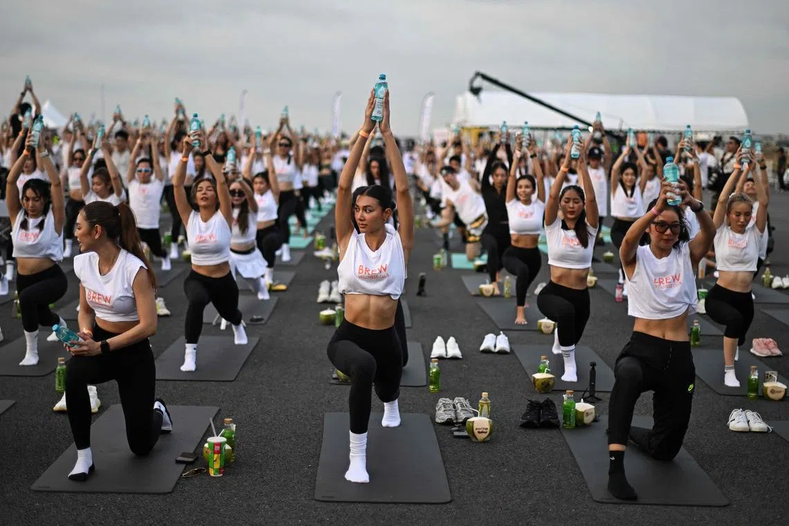 Some 500 yoga enthusiasts and camera-ready influencers began arriving at 5am (6am Singapore time), making their way in the dark to their mats on the runway.