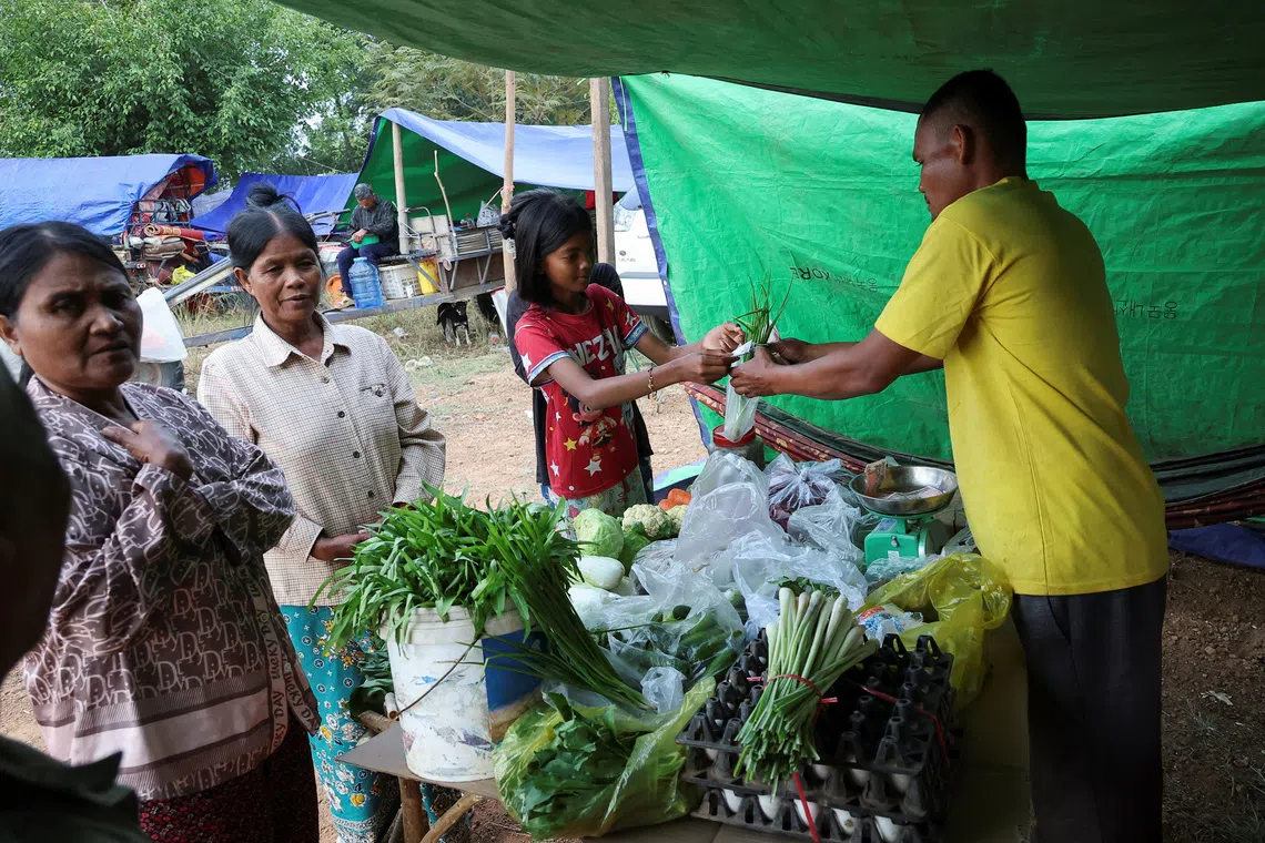 People shopping for groceries at a refugee camp in northern Cambodia’s Srei Snam on Dec 10.