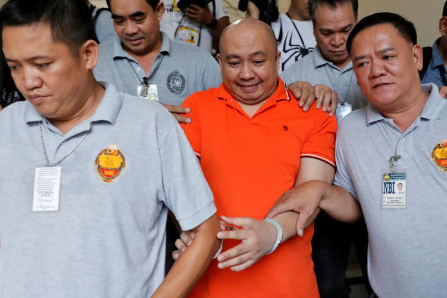 Agents of National Bureau of Investigation escort Filipino doctor Russell Salic during an extradition court hearing in Manila on Nov 7, 2017.