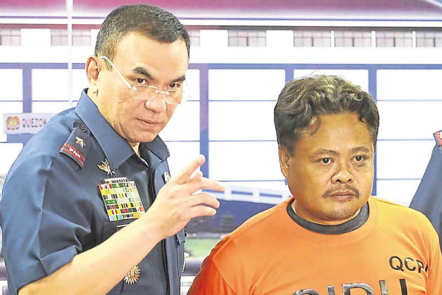 Orlando Estrera (right) with Chief Superintendent Guillermo Eleazar, director of the Quezon City Police District, during an interview with reporters on March 12, 2018.