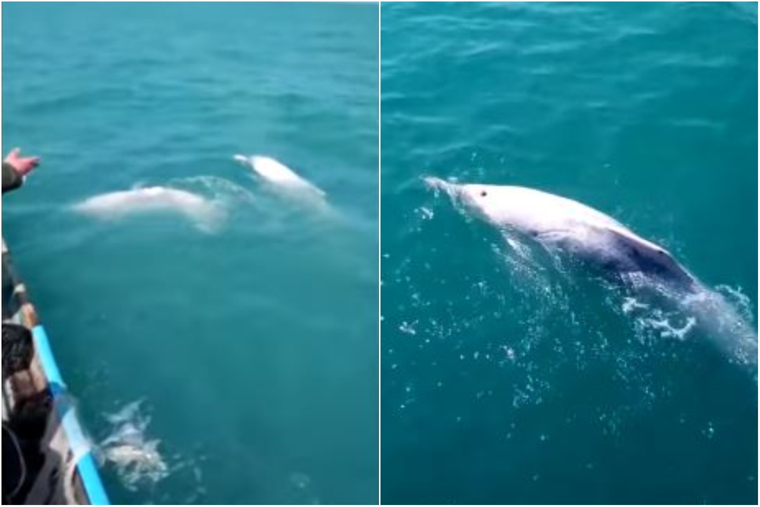 "The fishermen discovered the group of albino dolphins while they pulled their fishing net onto their boat, believing that the dolphins followed the fish that were caught in the net. Some of the dolphins swam around the boat, appearing to ask for food," the administrator said.