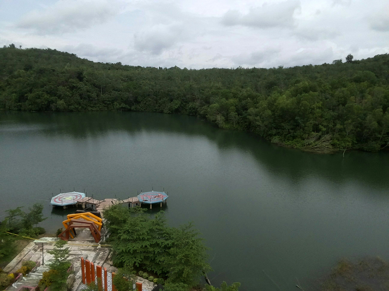 The collapsed jetty on Lake Kandi in Padang, West Sumatra where five tourists died as they tried to take pictures together.