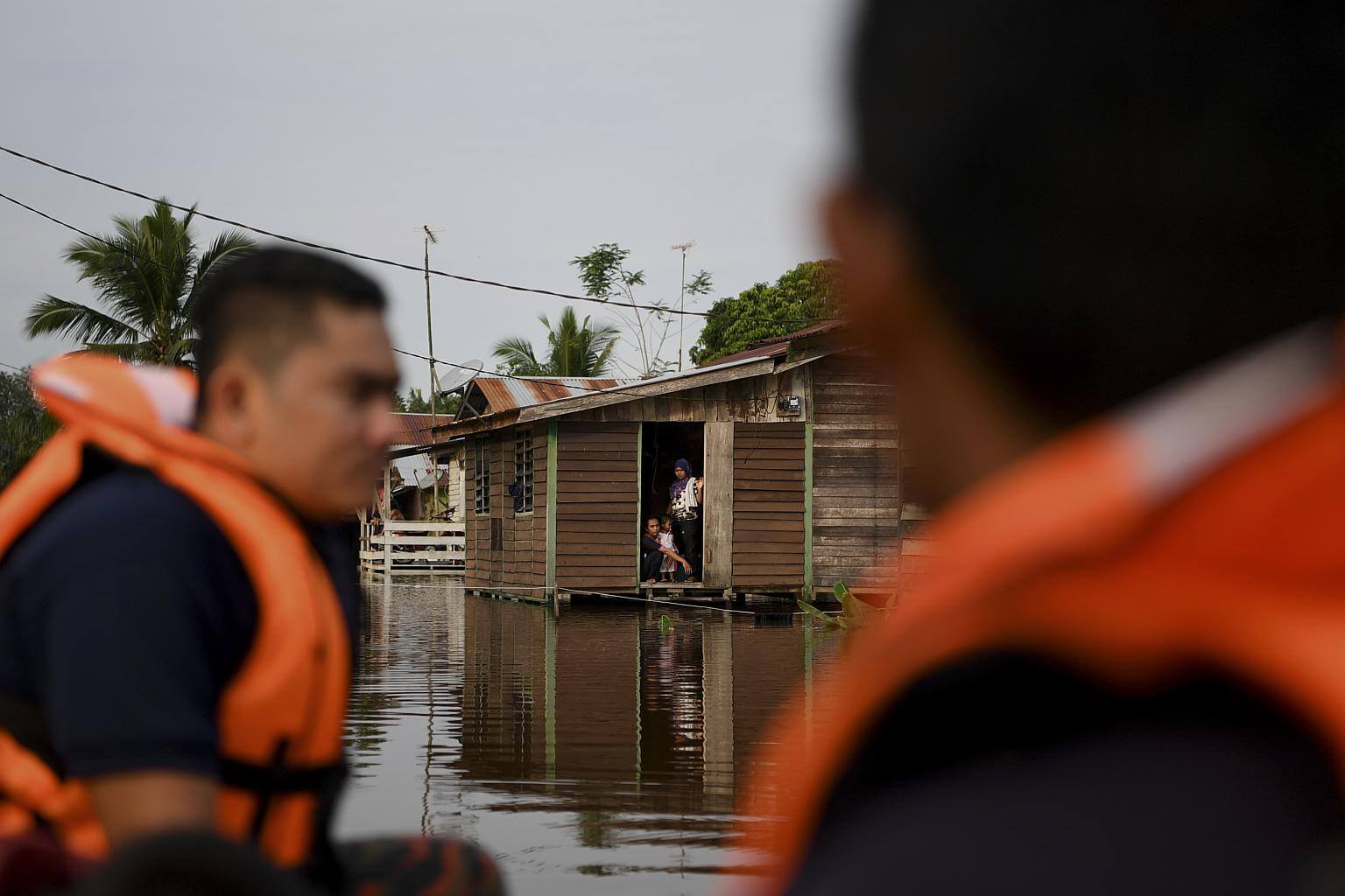 Residents affected by the flood in Pahang, Malaysia waiting for help on Jan 5, 2018.