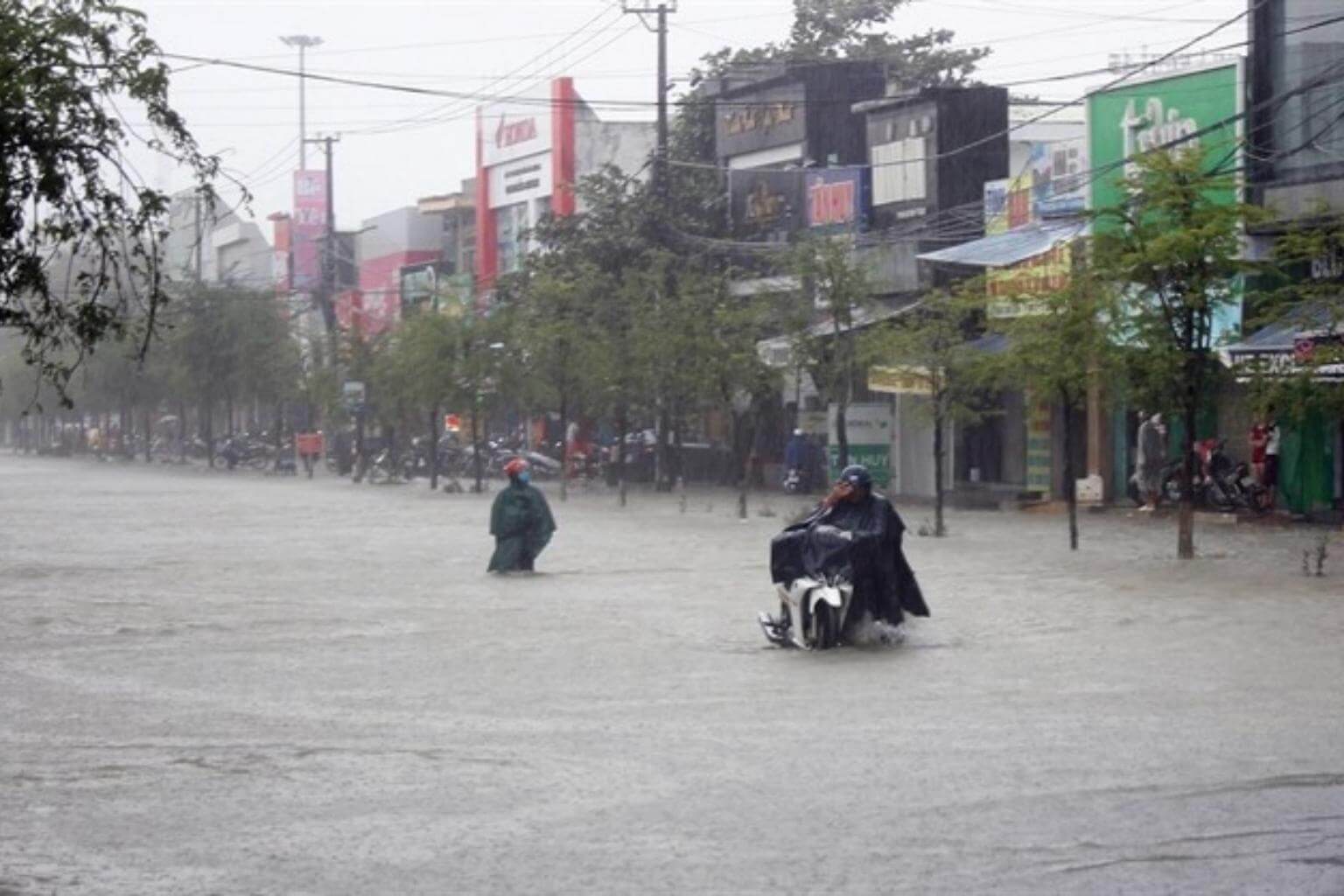Heavy rains submerge Phan Chu Trinh Road in Tam Ky District, the central province of Quang Nam.