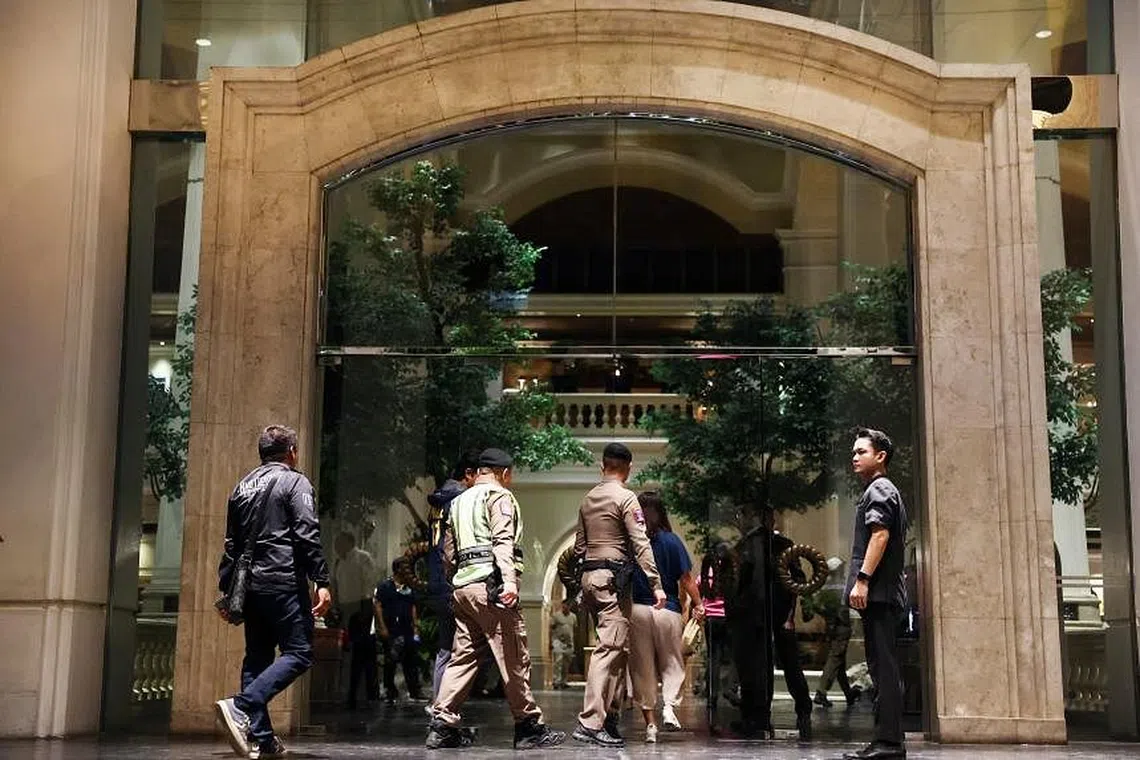 Policemen seen in the Grand Hyatt Erawan hotel, where at least six people were reported dead, in Bangkok on July 16.