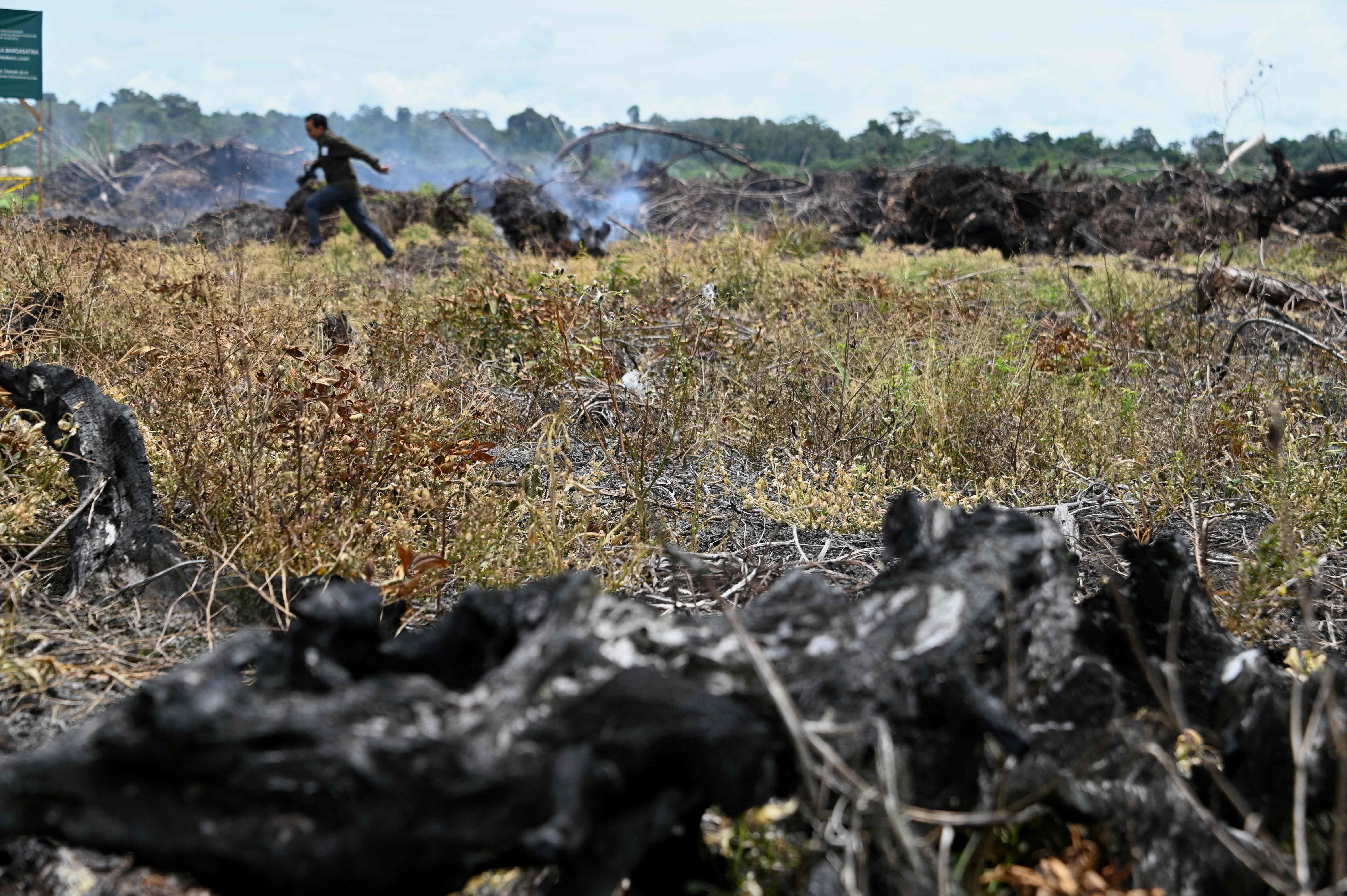 A peat land being burnt in preparation for the opening of a new palm oil plantation in Trumon, Southern Aceh province on Oct 24, 2021.