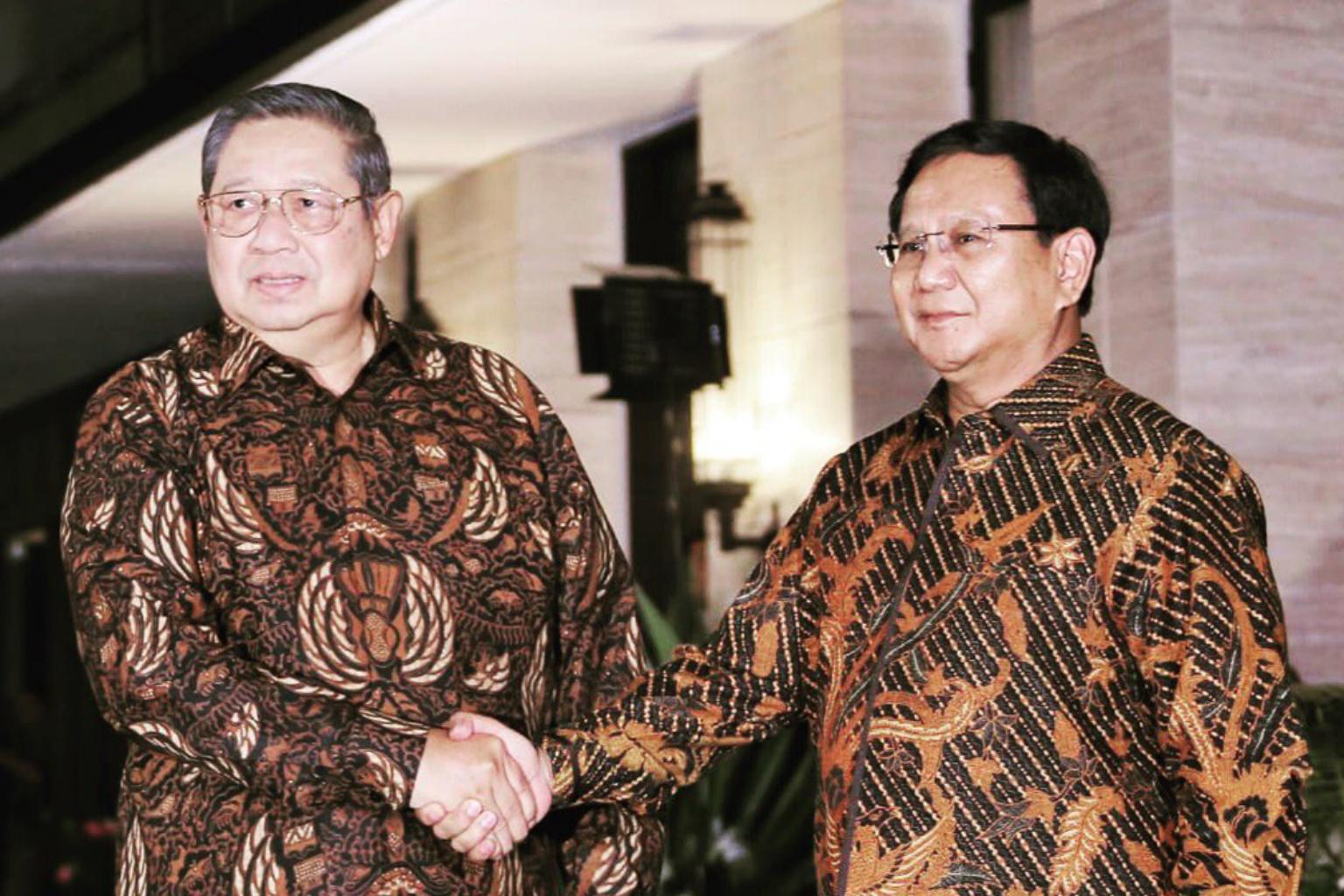 Former president Susilo Bambang Yudhoyono (left) said that he would support Gerindra party chairman Prabowo Subianto (right) in the 2019 presidential election.