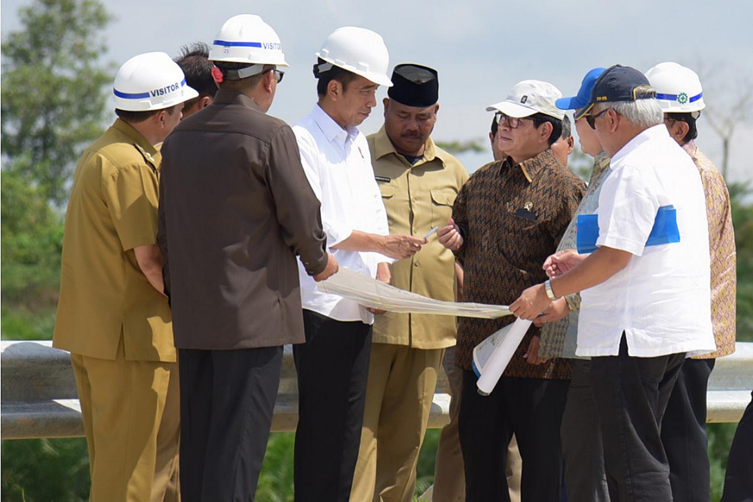 President Joko Widodo (third from left) and other officials at Bukit Soeharto, East Kalimantan province, as he surveyed a possible site for a new Indonesian capital, on May 7, 2019.