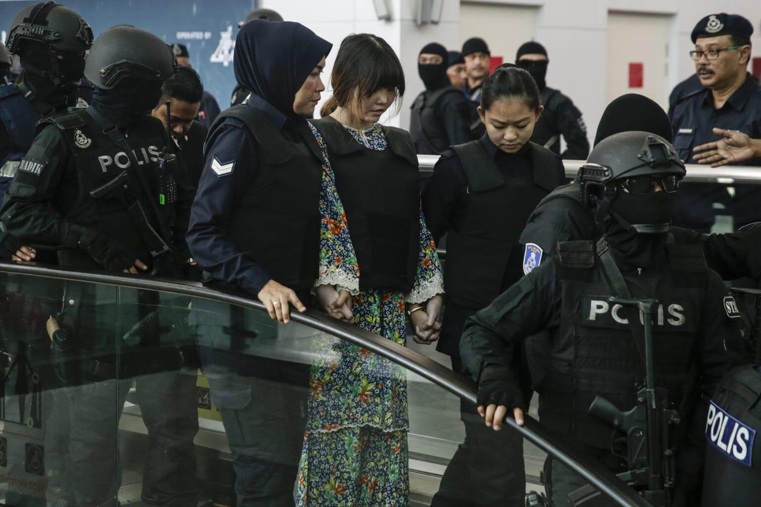 Doan Thi Huong (centre) who is on trial for the assasination of Kim Jong Nam, is escorted as she revisits the scene of the attack at Kuala Lumpur International Airport 2 in Sepang, Malaysia, on Oct 24, 2017.