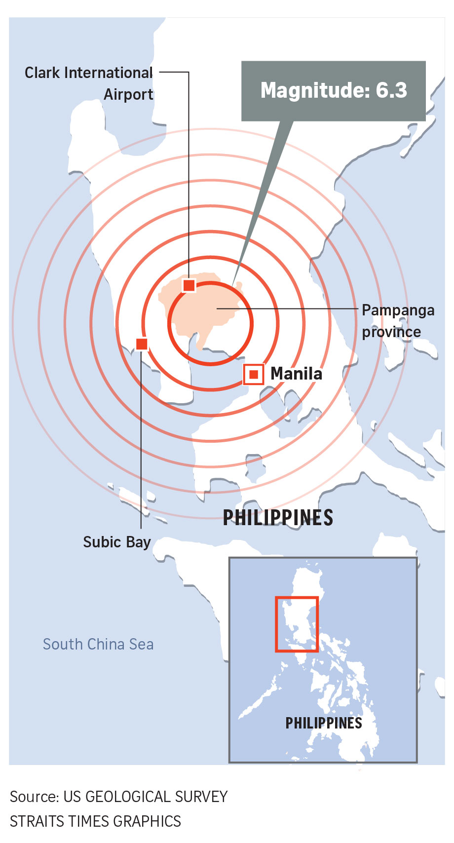 The worst of the damage was in the province of Pampanga, which was the site of all 11 fatalities, disaster officials said. Dozens of others were injured by falling rubble, including in Manila.