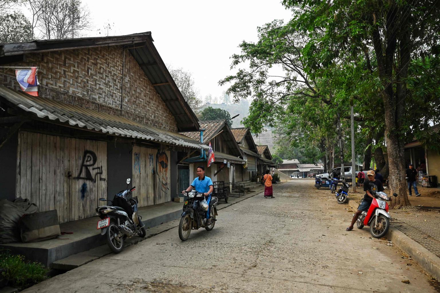 Today, several stores along the waterway are shuttered and padlocked. From the village, a Myanmar military outpost can be spotted on the other side of the river. On the river, children play in the water, while women bathe or do their washing - an idyllic, peaceful sight in contrast to the violence of the air strikes that happened just a couple of kilometres away.