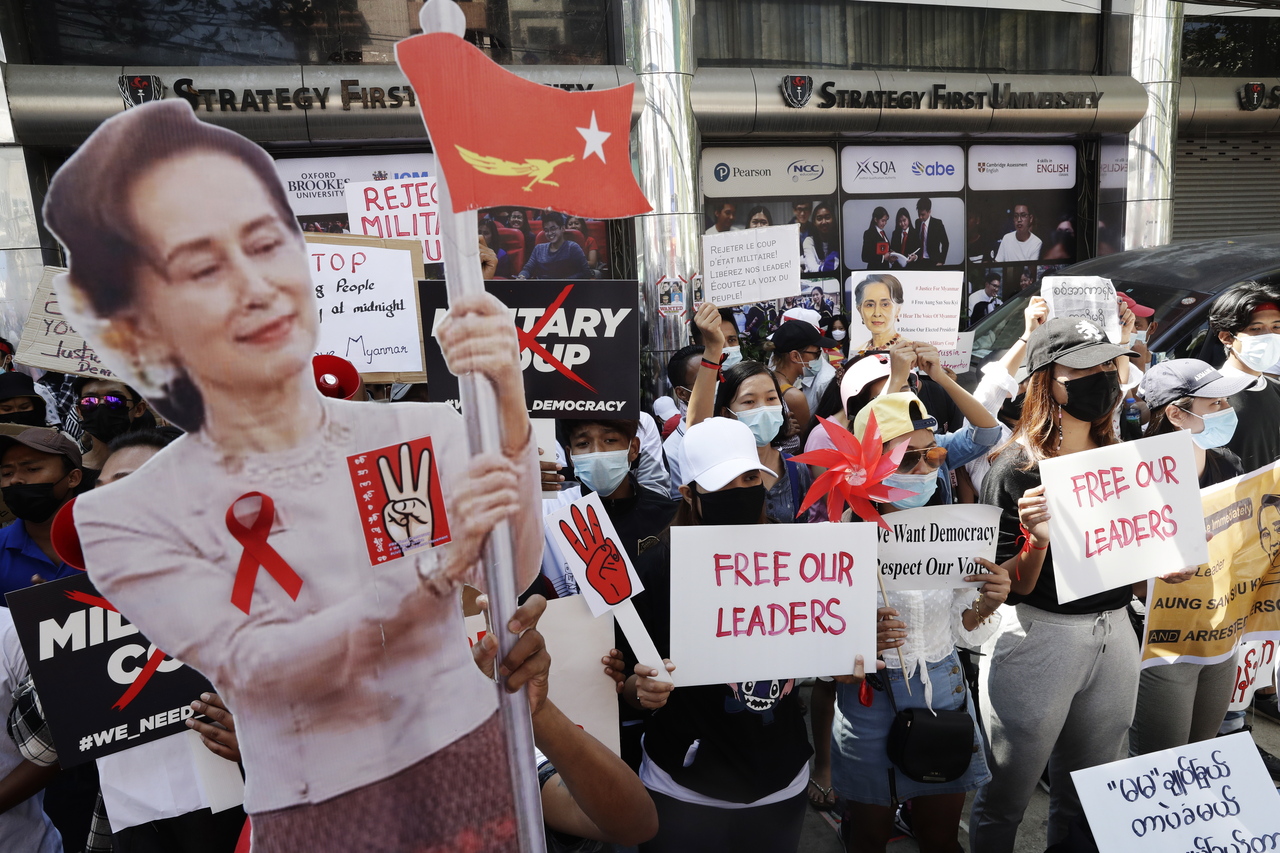 Mass demonstrations calling for the release of "Mother Suu" have been complimented by more disarming, Twitter-friendly rallies staged to communicate the larger anti-junta struggle to the international audience. Fitness trainers bared their six-packs on the streets of Yangon.