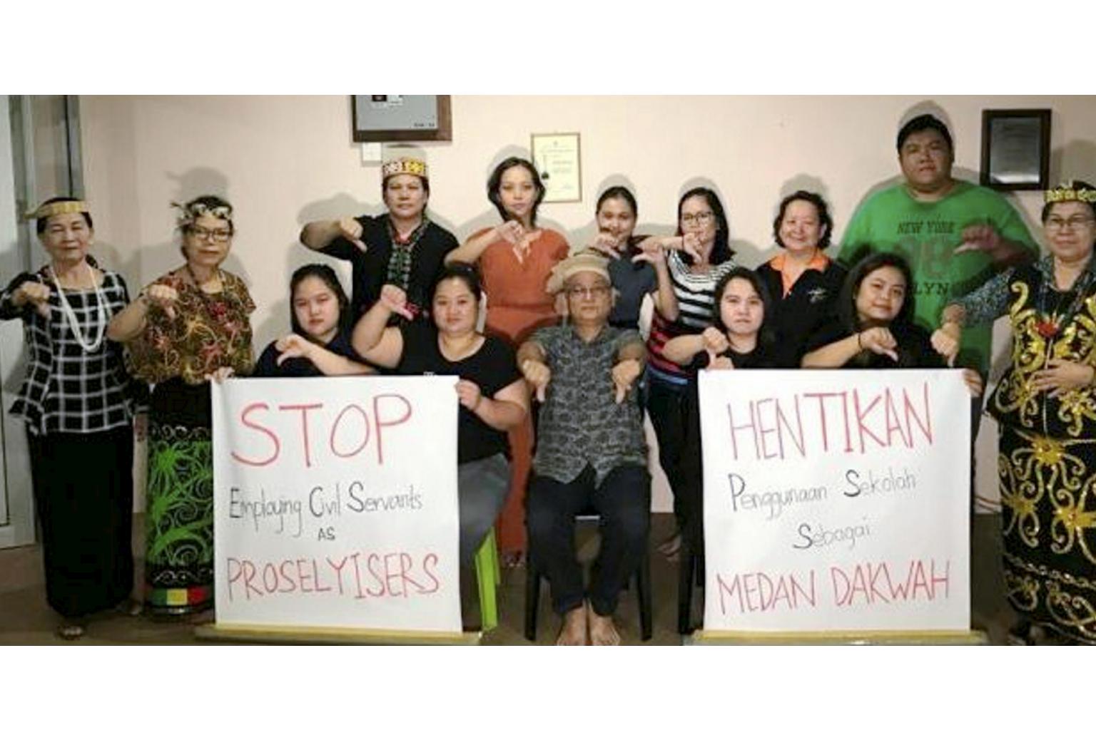 These groups, which are fighting for human rights for Sarawak natives, are protesting the minister's statement that schools in Sarawak and Sabah are grounds for Islamic conversion.