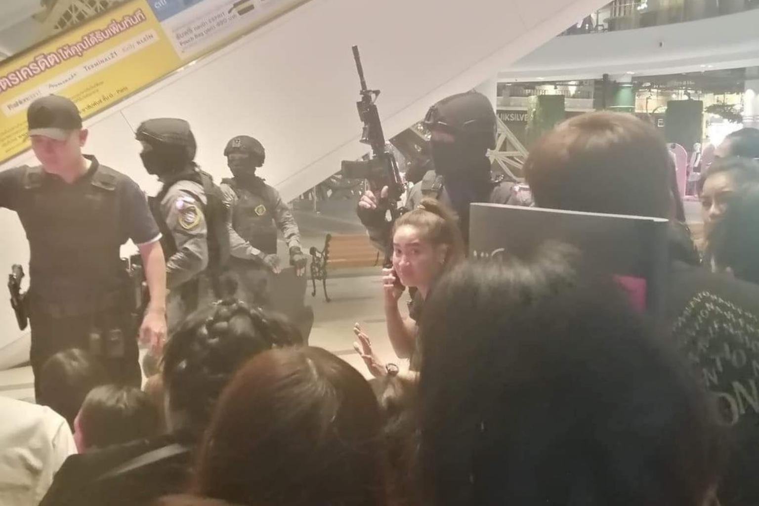Security forces evacuting people from a shopping mall after a shooting rampage in Nakhon Ratchasima, Thailand, on Feb 8, 2020.