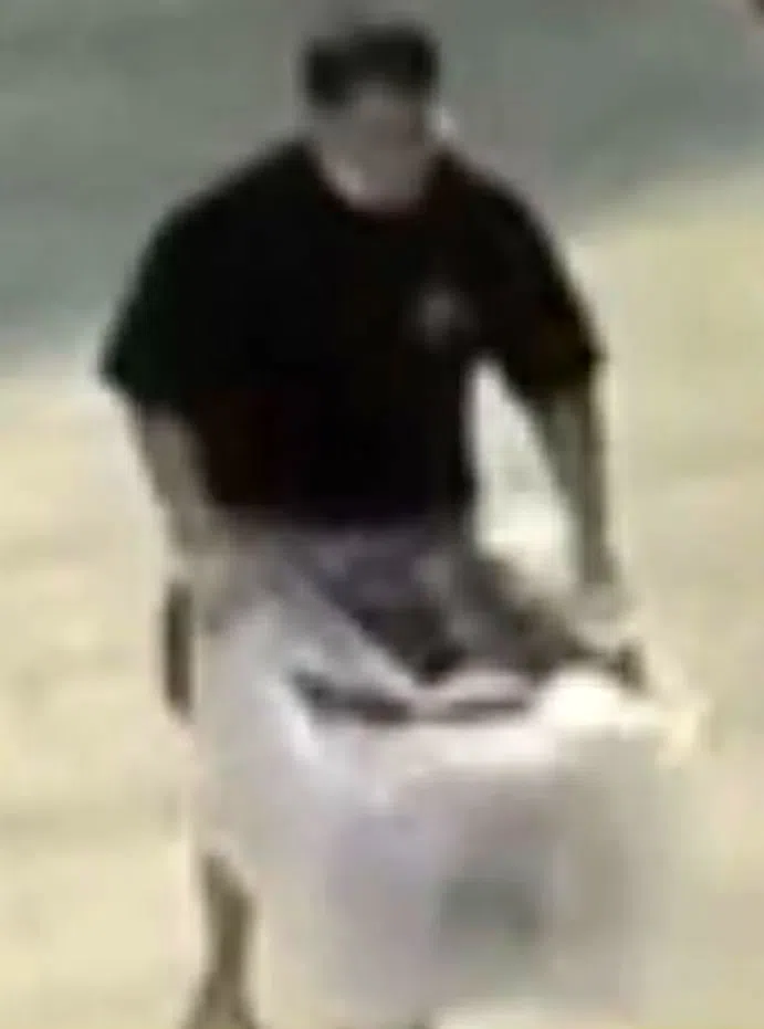 A male suspect, dressed in a black top and shorts, was captured on CCTV footage holding a large white plastic box, according to local media reports. The unidentified man then loaded the box into a white seven-seater vehicle with the rear door open. It is not clear where the CCTV footage was taken from.