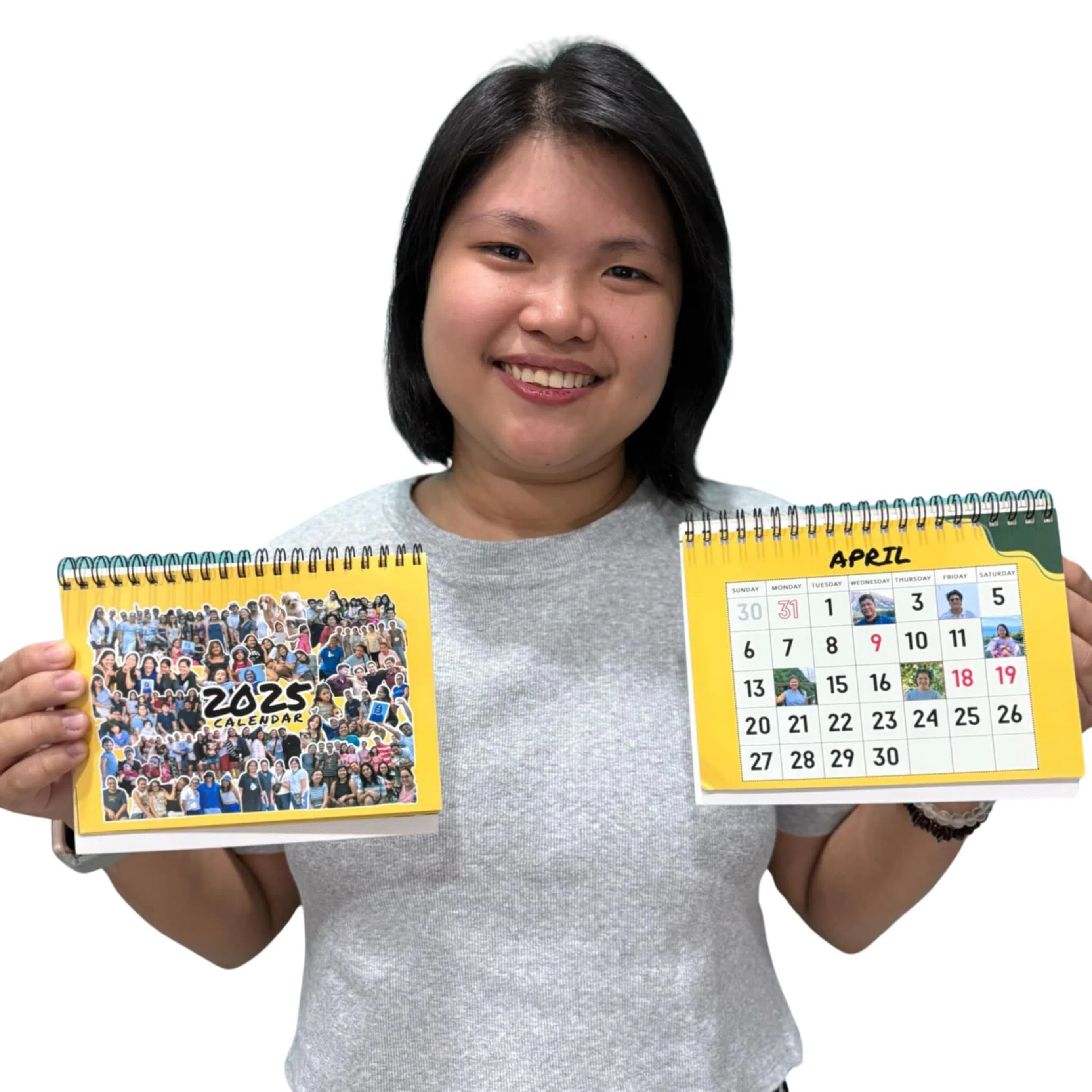 Ms Mary John Ramos shows off the personalised calenders she will be giving to her relatives this Christmas.
