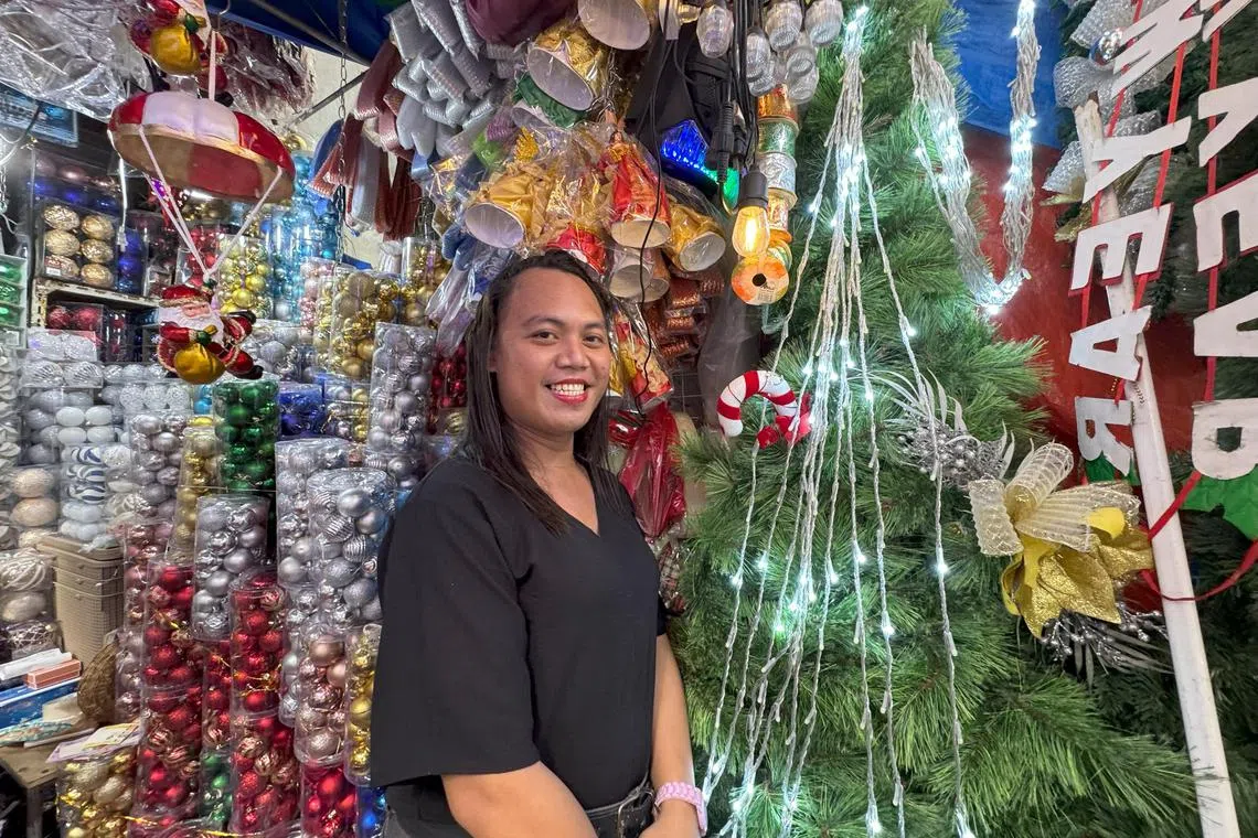 Ms Calo told The Straits Times that in 2023, she sold 3m-tall Christmas trees at 10,000 pesos each and Christmas balls for 1,000 pesos per set of four. She cut this year’s prices by 50 per cent to 70 per cent, as her customers say that is all they can afford right now.