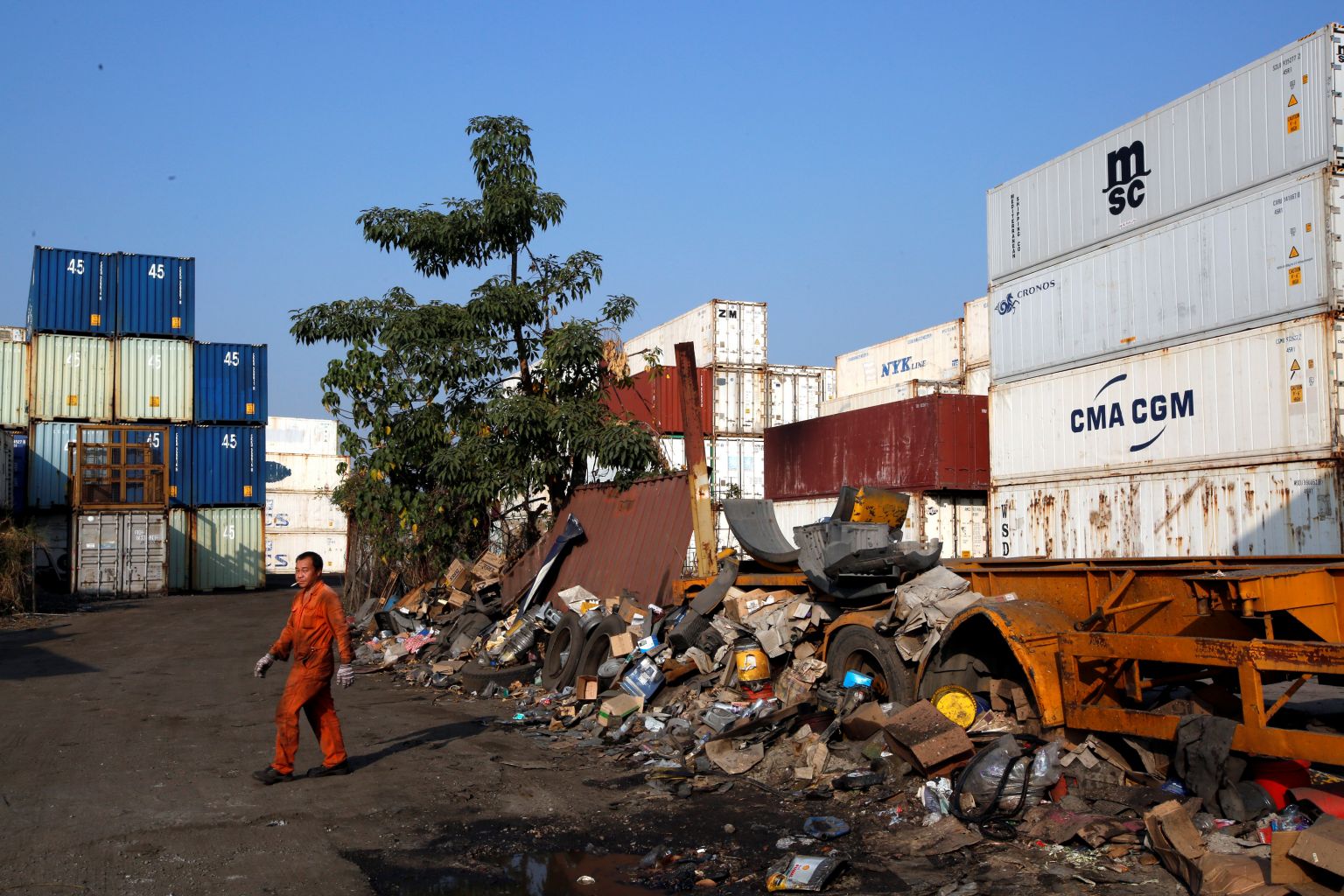 A plot of rural land in Hong Kong’s New Territories hinterland, owned by a developer and being used as a yard for containers and scrap.