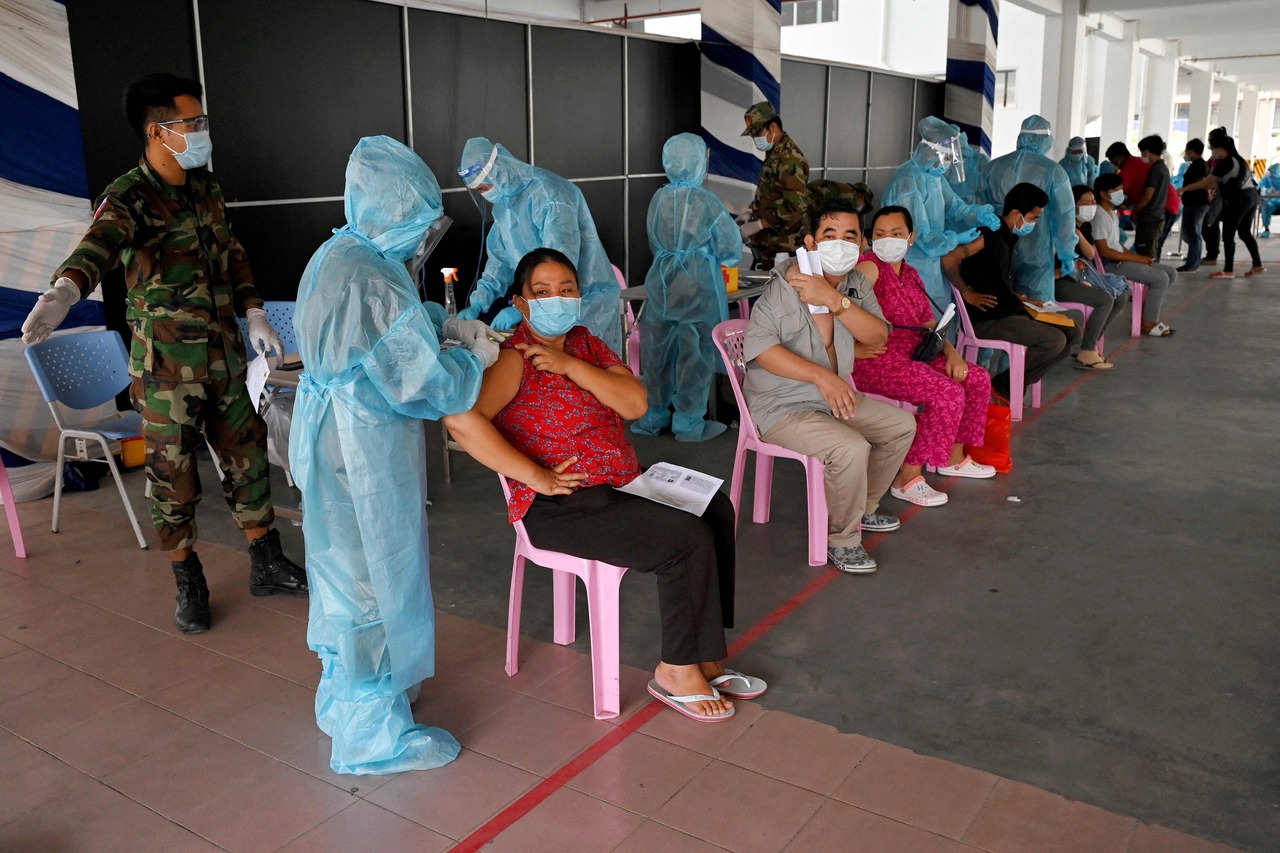 People receive the Sinovac vaccine in Phnom Penh on May 1, 2021.