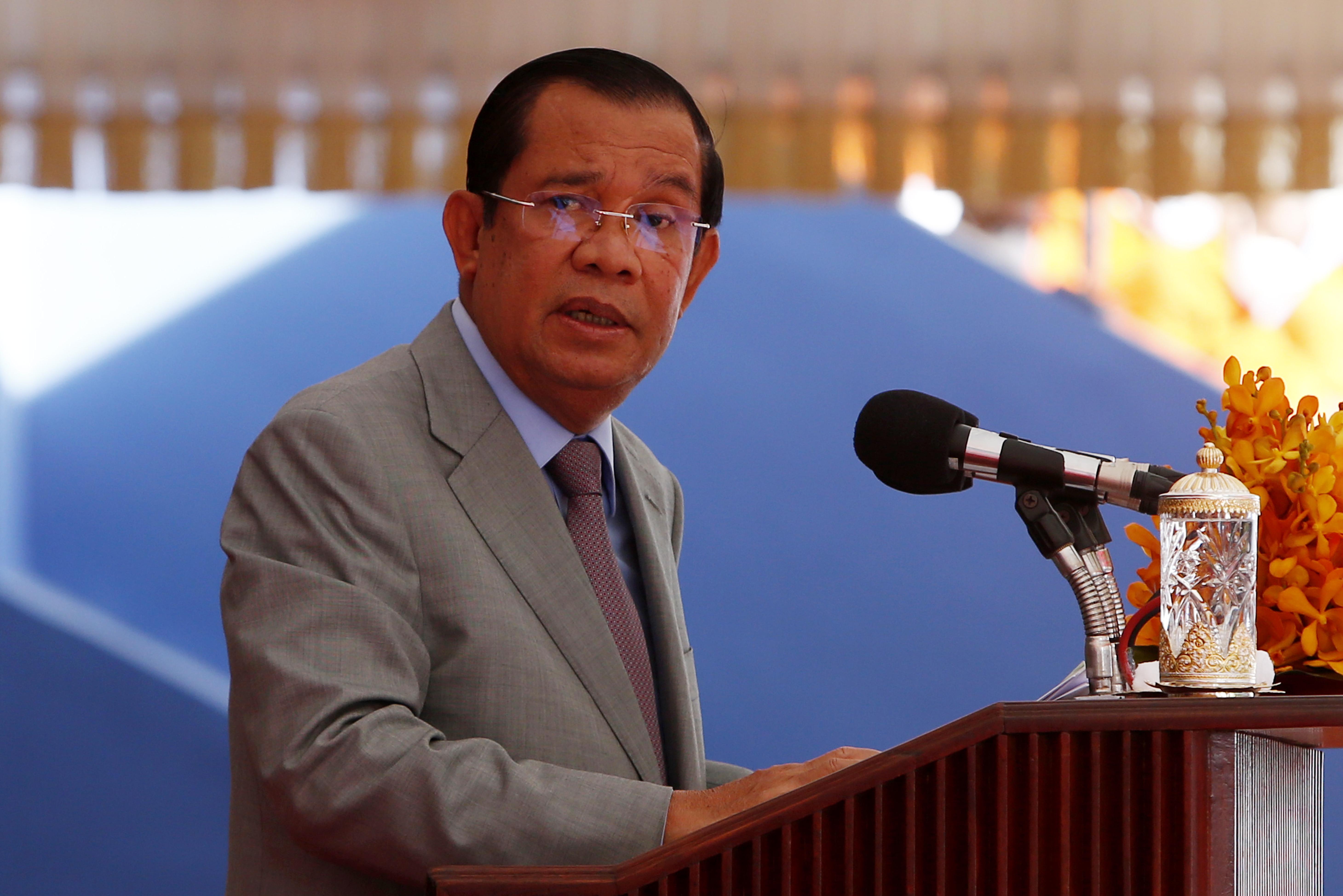 Cambodian Prime Minister Hun Sen speaks during the inauguration ceremony for the Morodok Techo National Stadium in Phnom Penh on Dec 18, 2021.