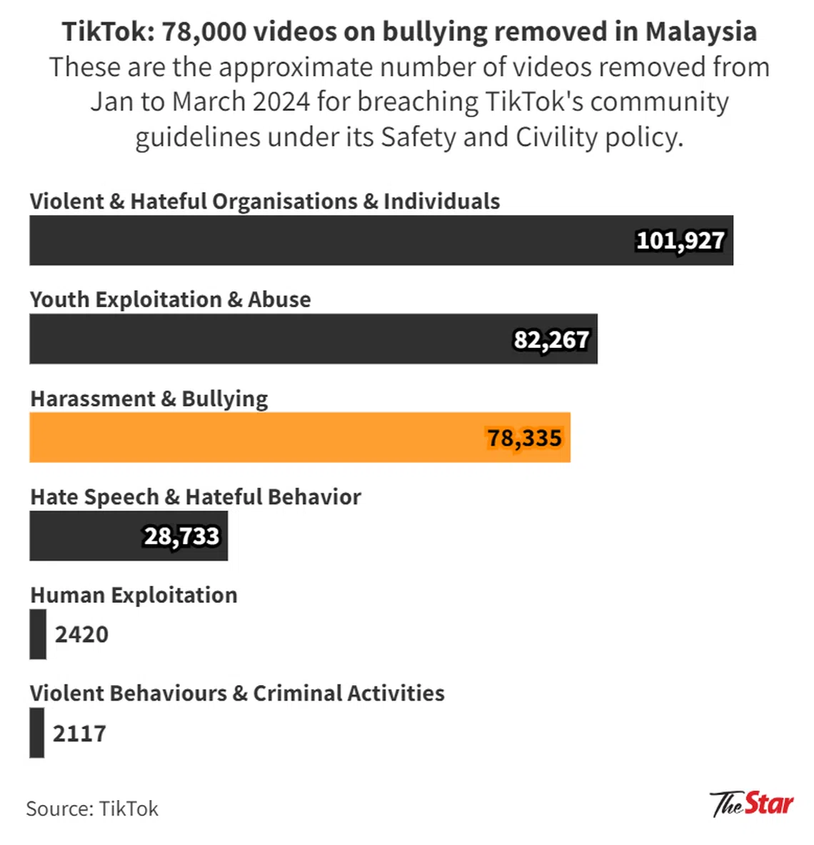 About 78,000 videos in Malaysia with such content were removed by TikTok during the first three months of 2024, based on data from the social media giant.