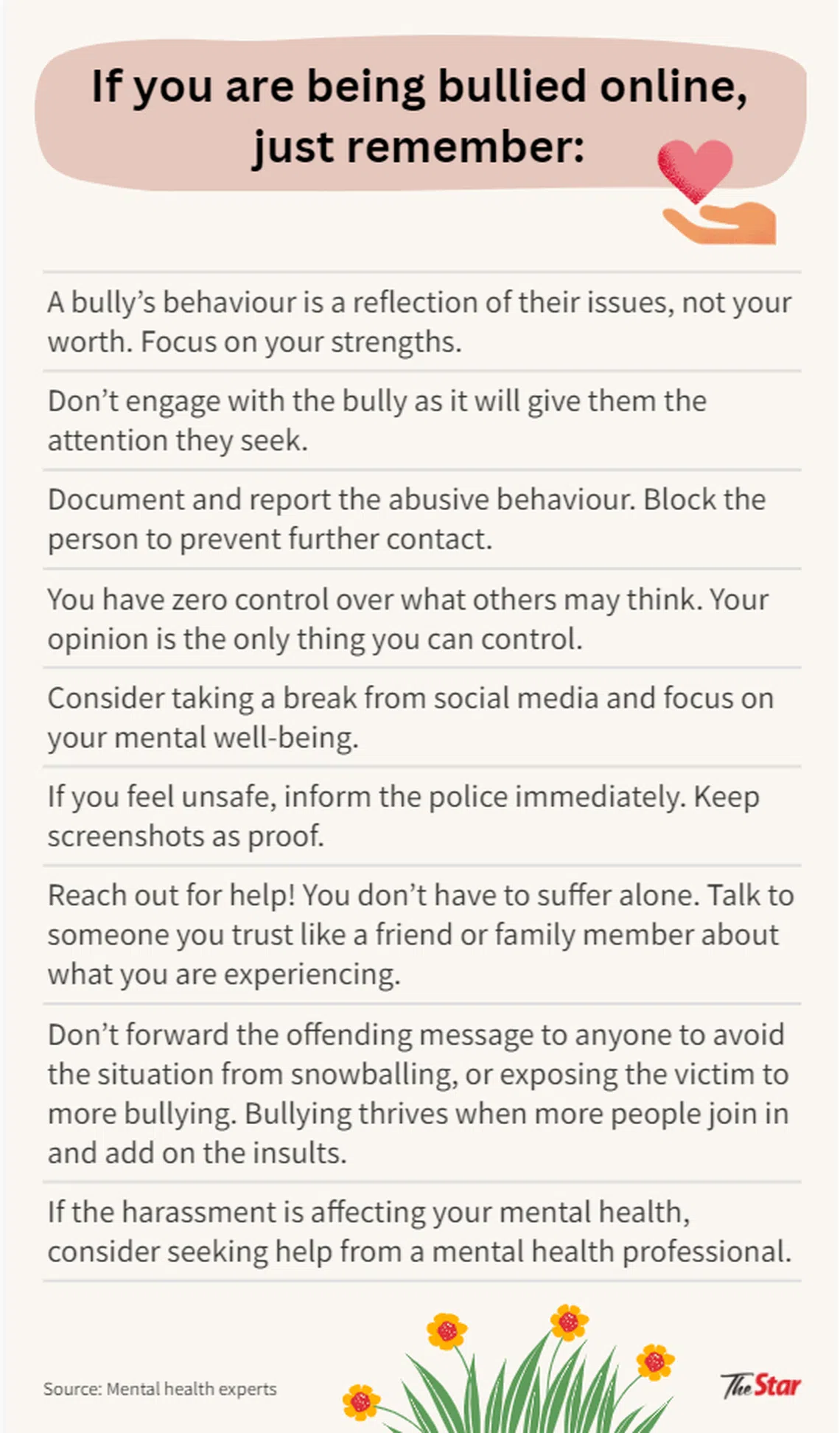 “This is because the victim tends to internalise and take the mean comments personally – even leading to self-harm and suicide,” she said. THE STAR/ASIA NEWS NETWORK