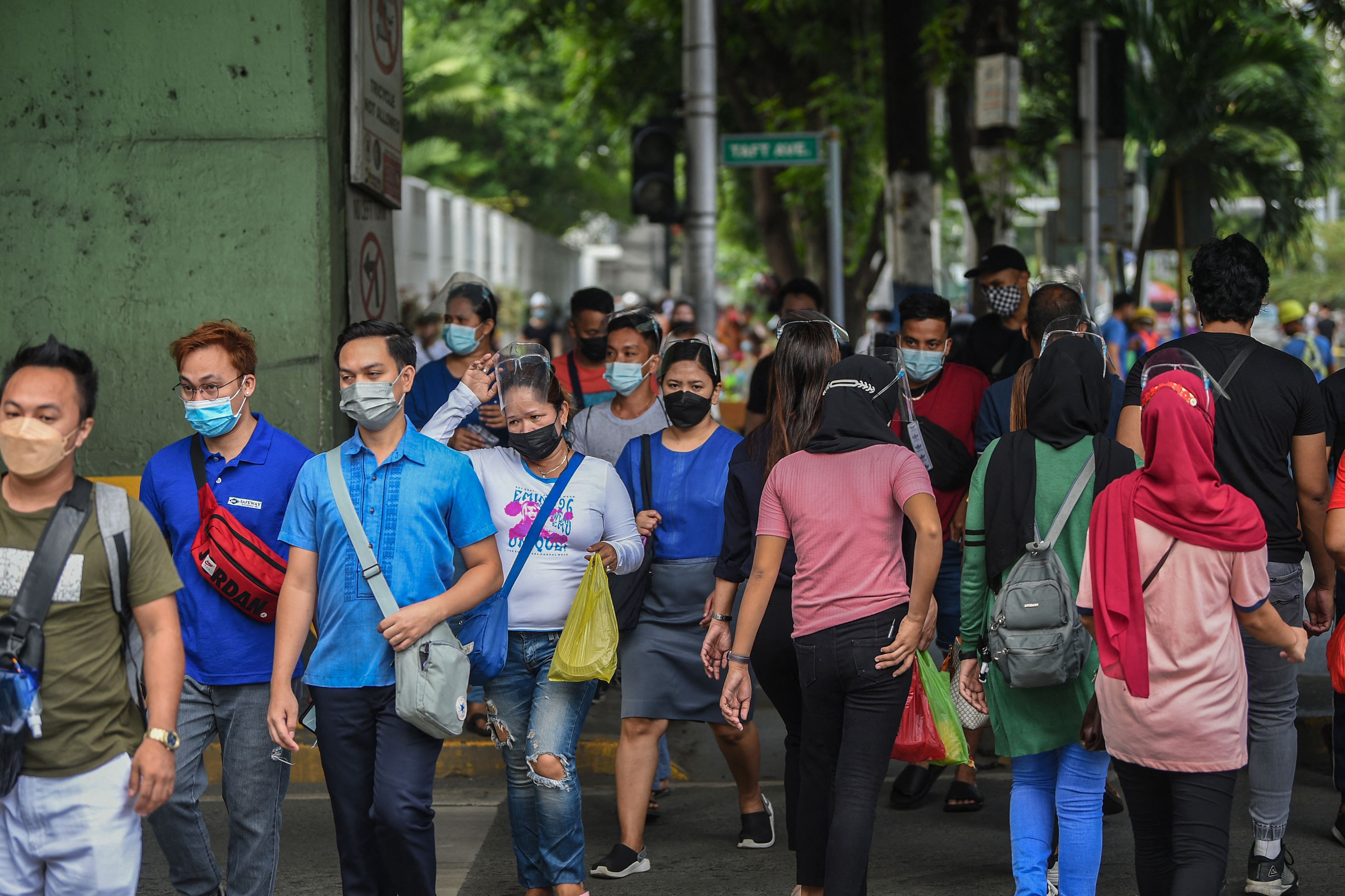 People cross a street in Manila on Sept 7, 2021.