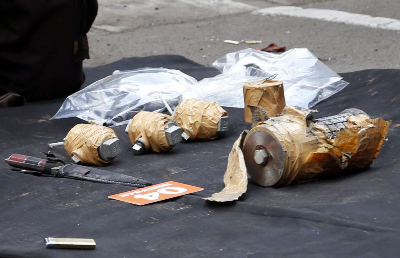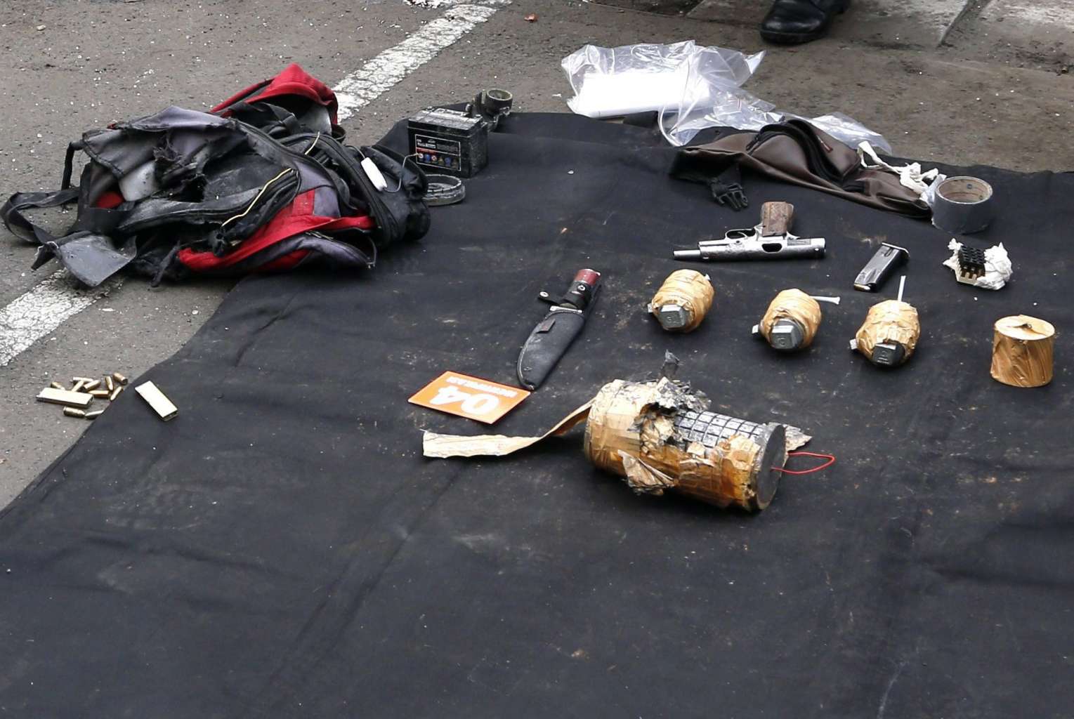11.20am: The arsenal of weapons that the attackers were carrying after the bomb blast on Jan 14, 2016.