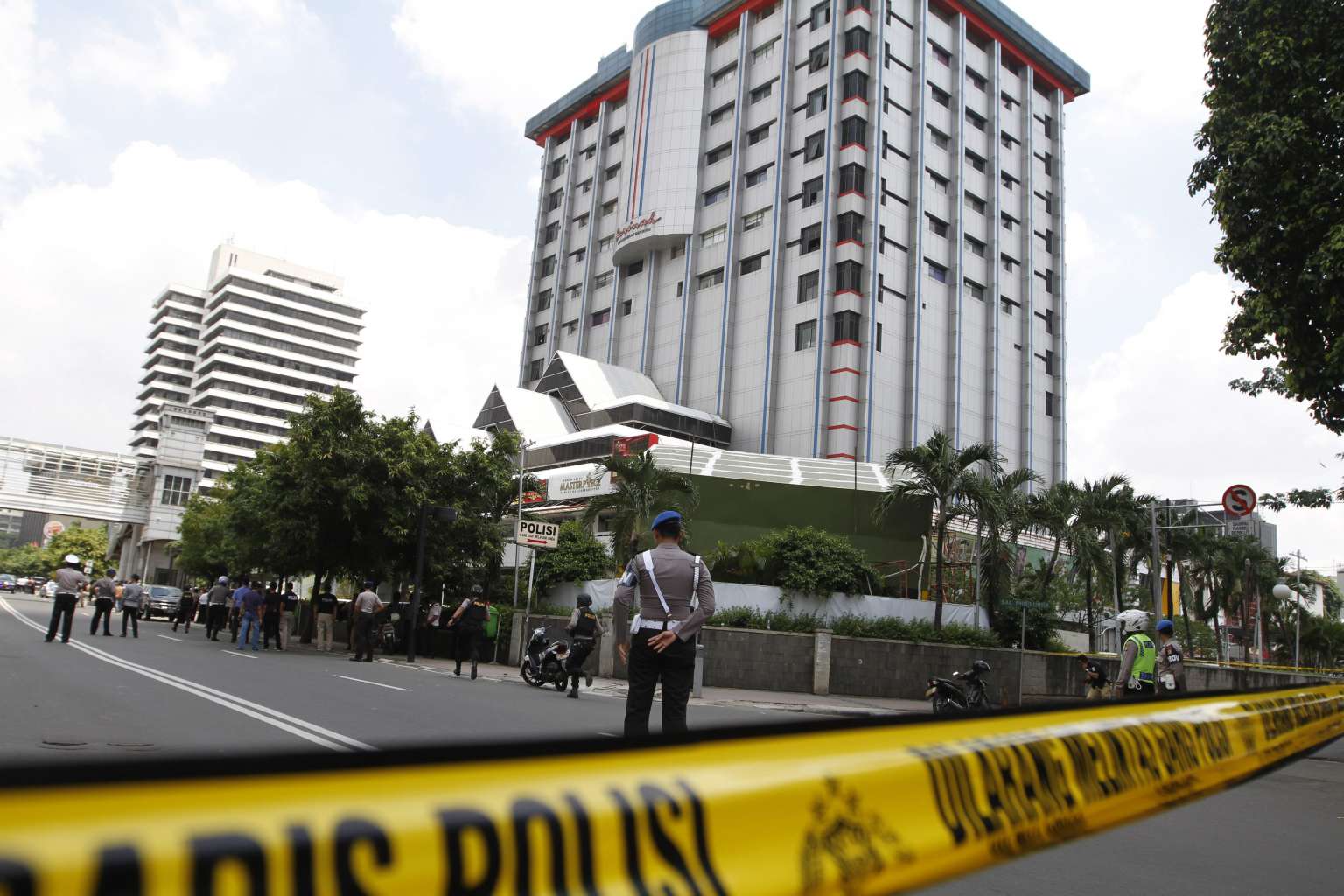 11.20am: A police cordon sealing off the scene of a bomb blast in Jakarta on Jan 14, 2016.