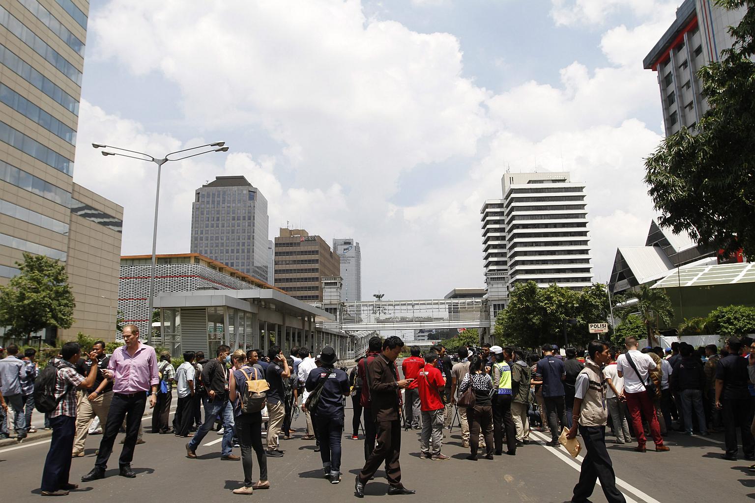 11am: The scene of a bomb blast at a police station in front of a shopping mall in Jakarta, Indonesia, on Jan 14, 2016.