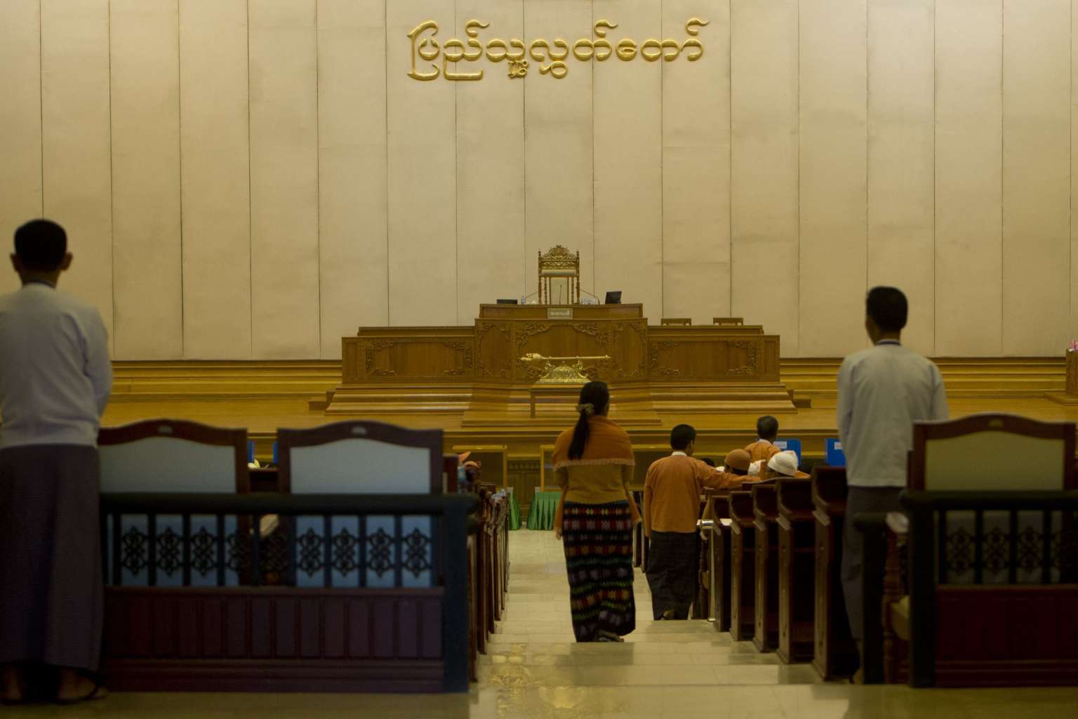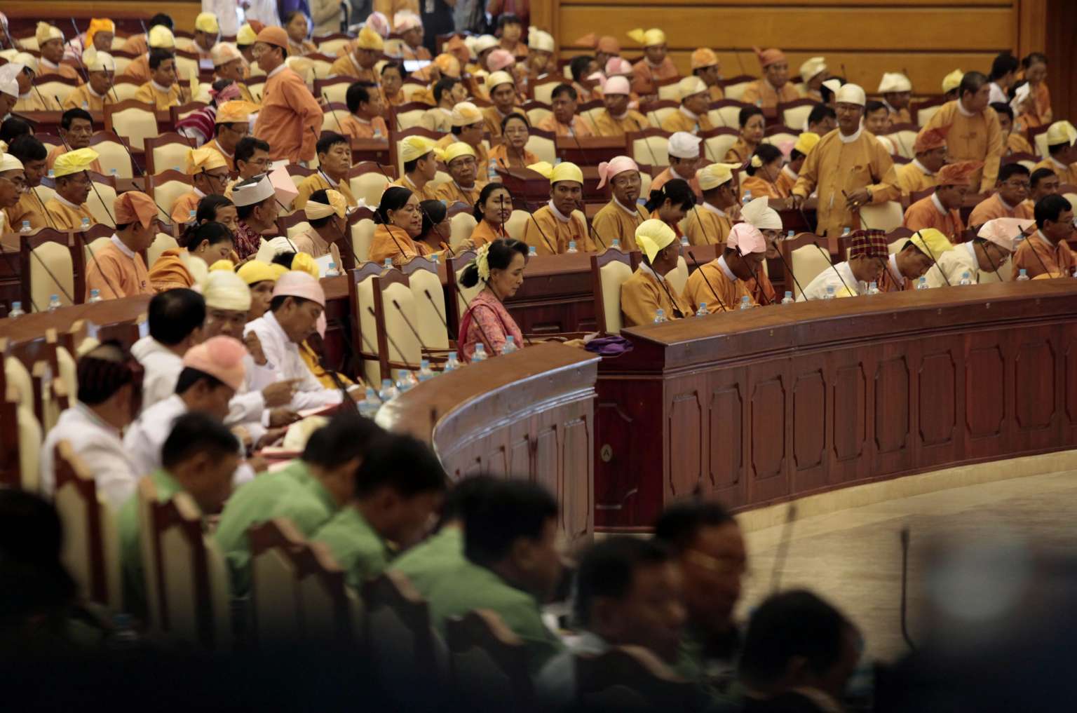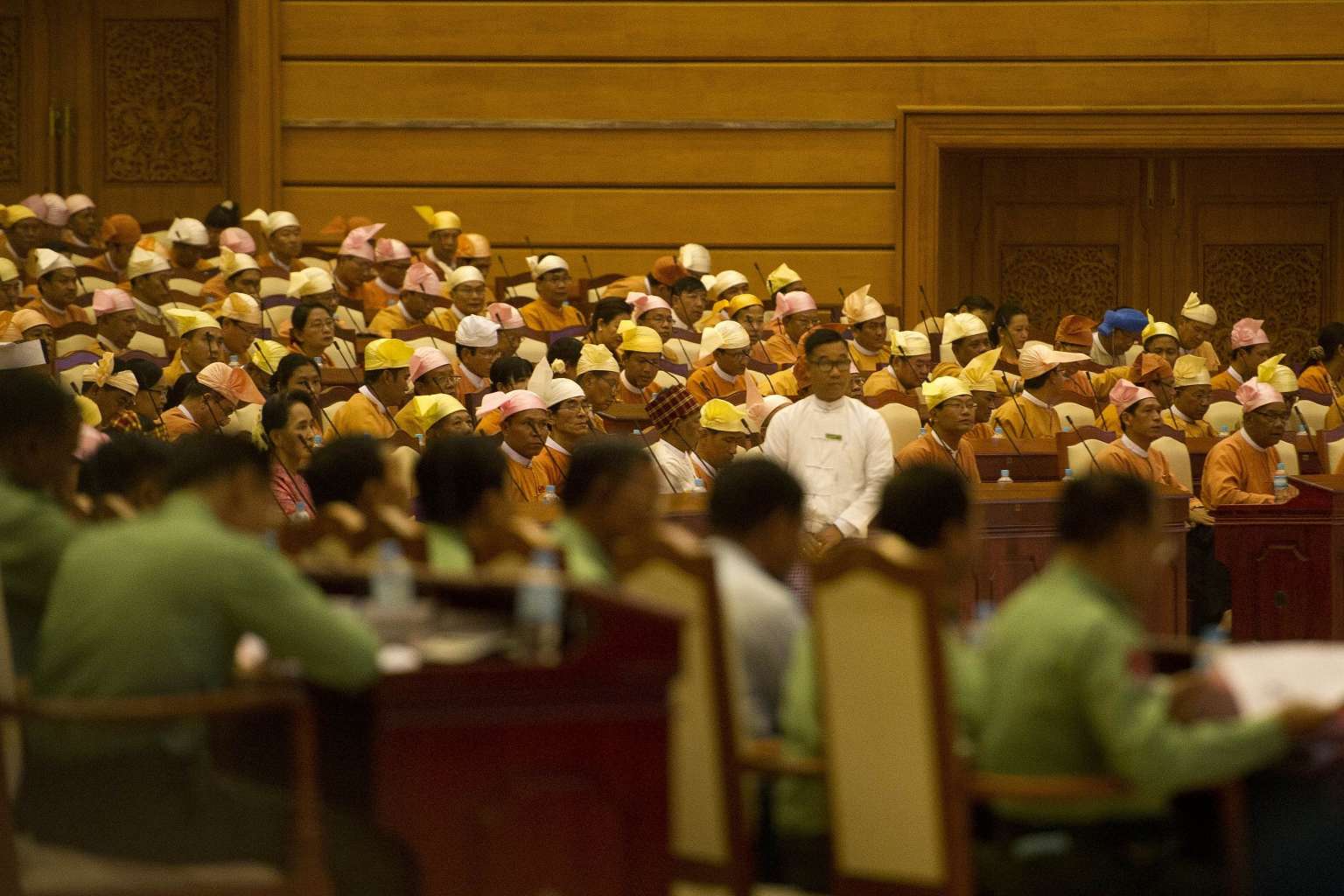 Myanmar MPs attend the new lower house parliamentary session on Feb 1, 2016.