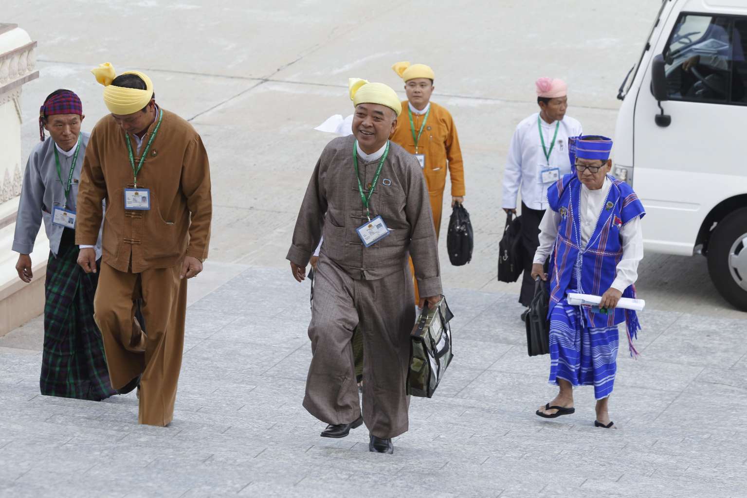 Members of Myanmar's new Parliament arrive for the first day of a new parliamentary session on Feb 1, 2016.