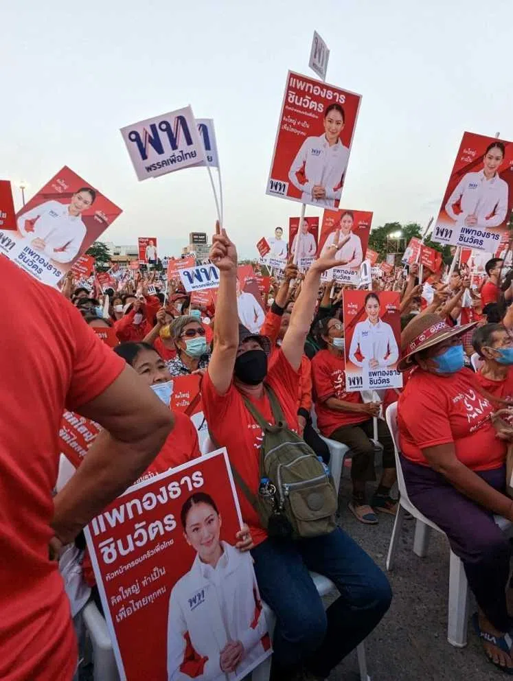 At each rally, the loudest cheers go to Ms Paetongtarn, who is seven months pregnant, underscoring the results of several opinion polls that show her as a hot favourite for prime minister.